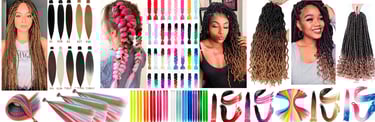 We bring you our vibrant collection of synthetic hair! Discover colorful synthetic braids, high-quality Kanekalon for extensions and braids, and convenient pre-made braids. Create unique looks with these long-lasting, flexible and realistic fibers, perfect for both professionals and DIY hair braiding and extension enthusiasts. Shop now!
