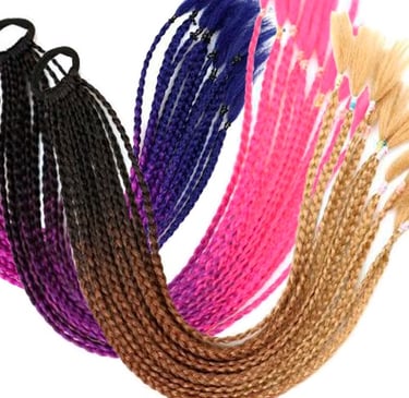 "Braiding Hair" is a collection of hair extensions and accessories used to create a variety of braided hairstyles.